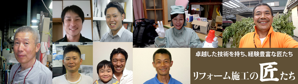 リフォームの種類は、「一戸建て住宅」「マンション」の全面改装リフォーム、キッチン、浴室、トイレ、洗面所、給湯機等の水廻り設備工事、また壁紙張替えなどの内装工事、窓廻り工事、家具工事、建具・階段工事、手摺・介護リフォーム、その他間取り変更や外装工事、屋根工事、外構・エクステリア工事に至るまで住宅に係るほとんどの工事を対応させて頂いております。