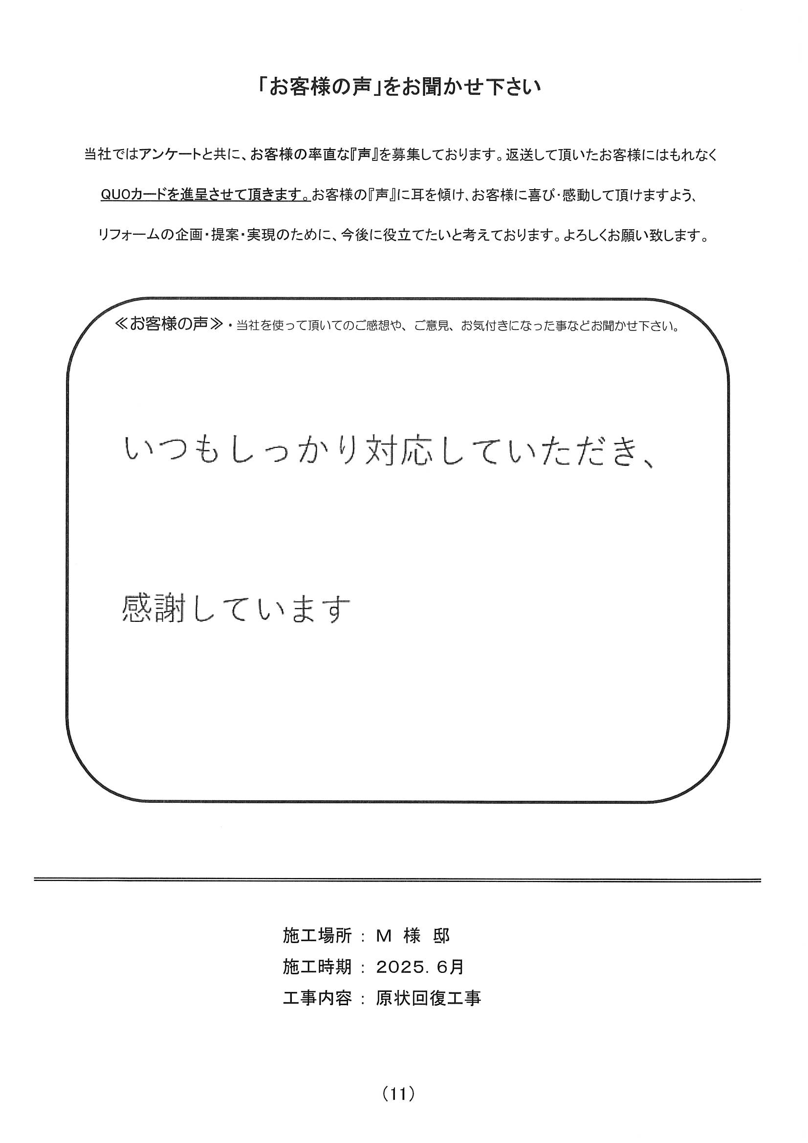 施工場所 M様邸 住宅形態 マンション 施工時期 2025年6月 工事内容 原状回復工事