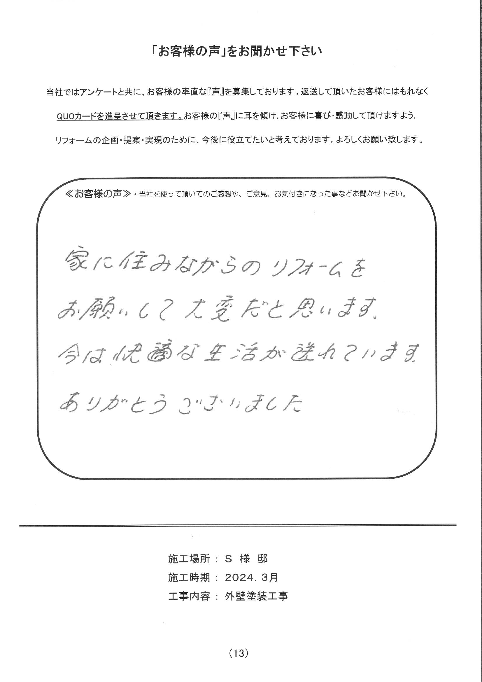 お客様よりアルファリフォームに届いたアンケートの一部をご紹介させて頂きます。