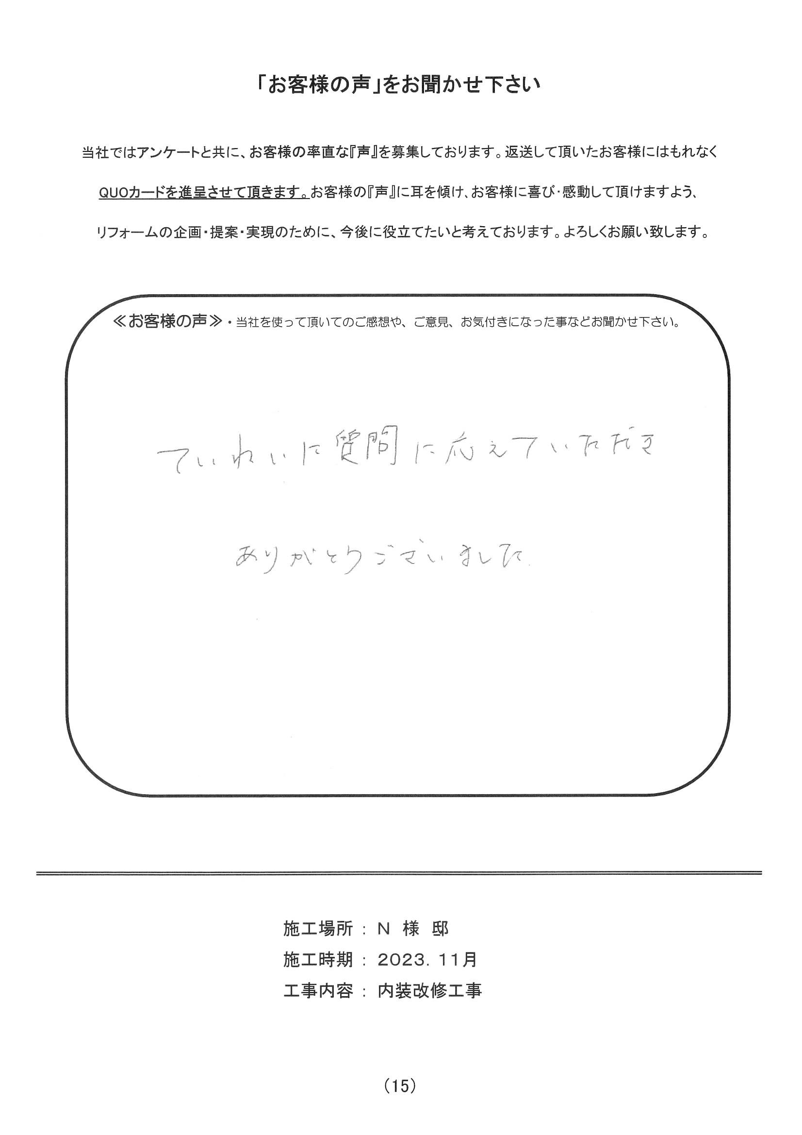 お客様よりアルファリフォームに届いたアンケートの一部をご紹介させて頂きます。