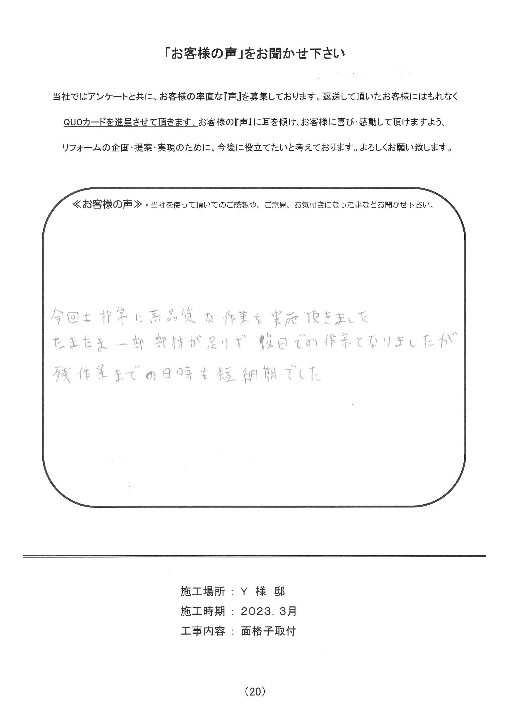 施工場所 Y様邸 住宅形態 戸建て 施工時期 2023年3月 工事内容 面格子取付