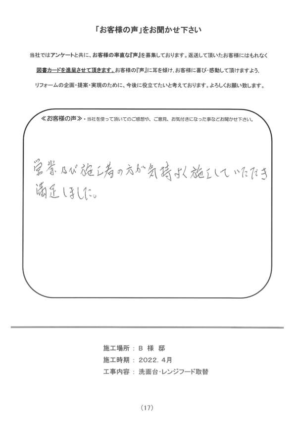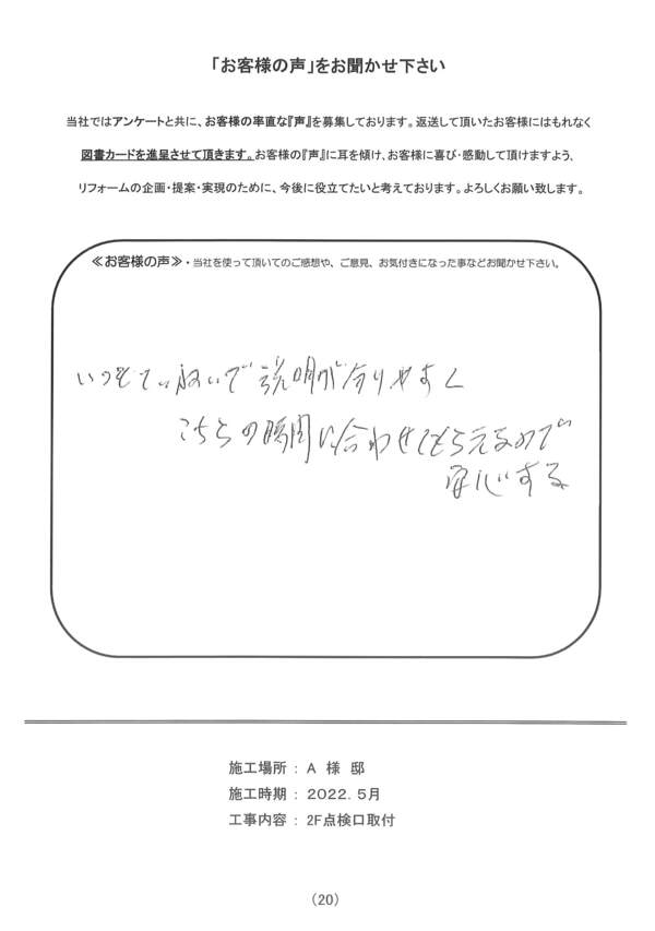 営業及び施工者の方が気持ちよく施工していただき満足しました。