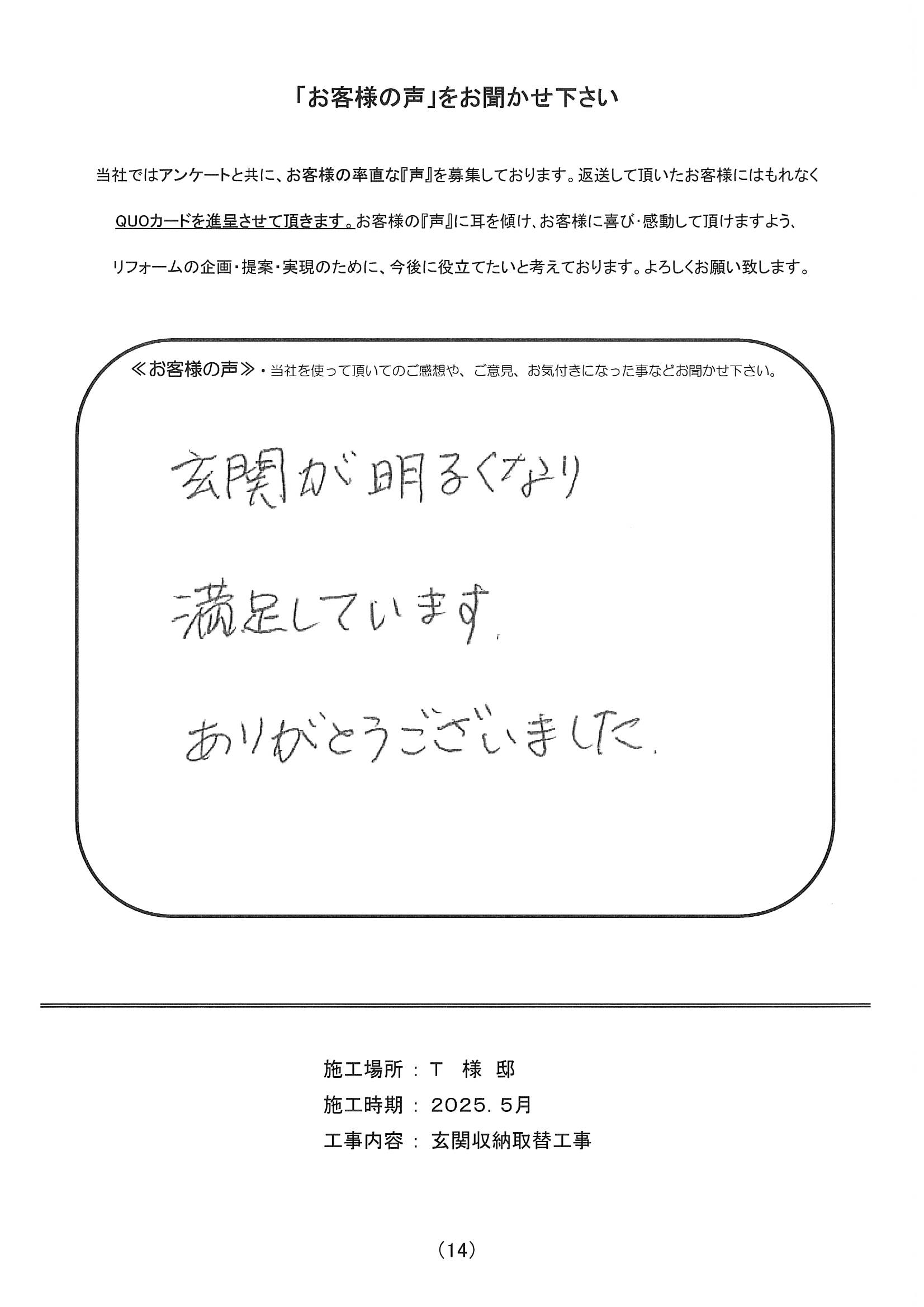 施工場所 T様邸 住宅形態 戸建て 施工時期 2025年5月 工事内容 玄関収納取替工事
