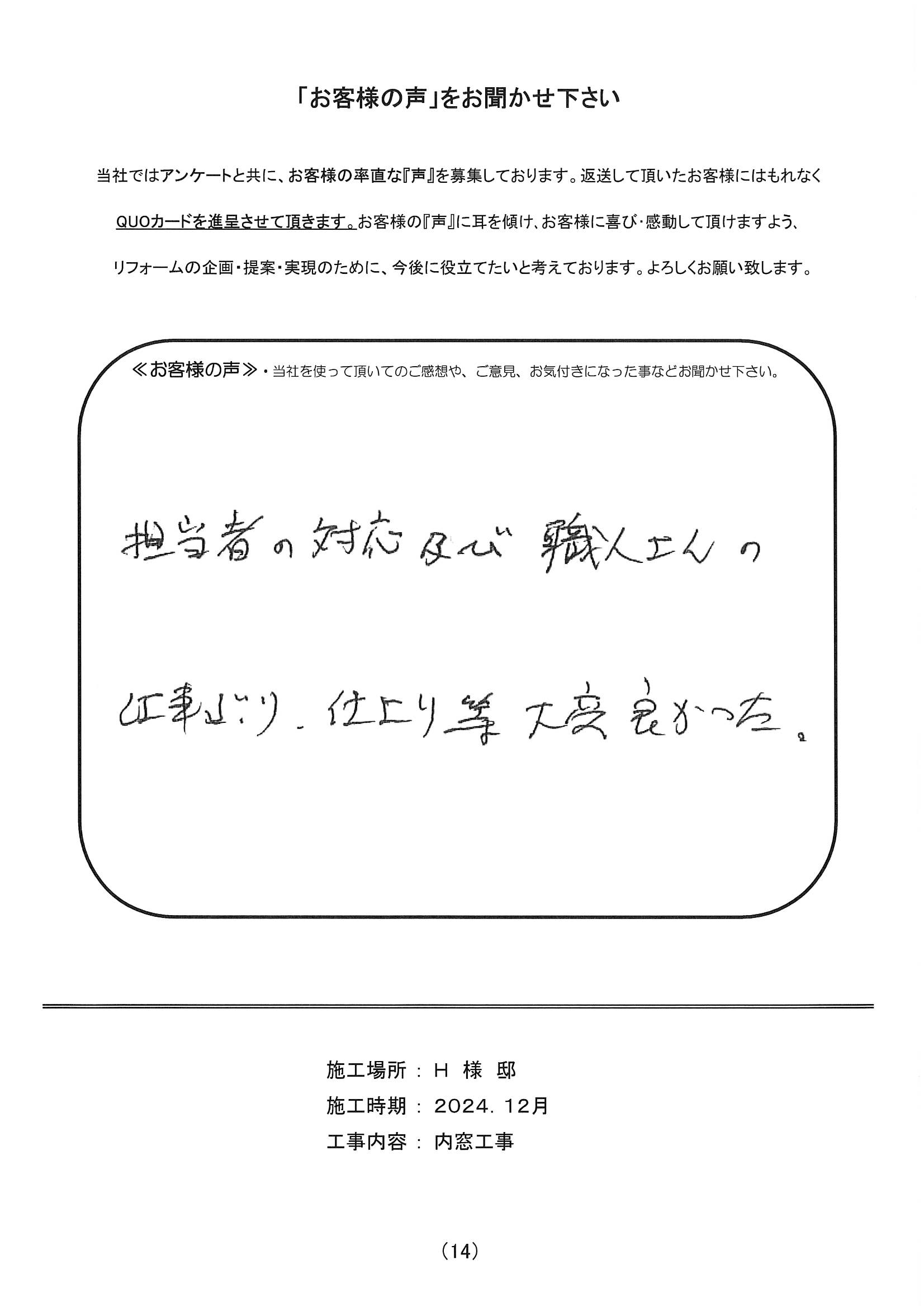 お客様よりアルファリフォームに届いたアンケートの一部をご紹介させて頂きます。