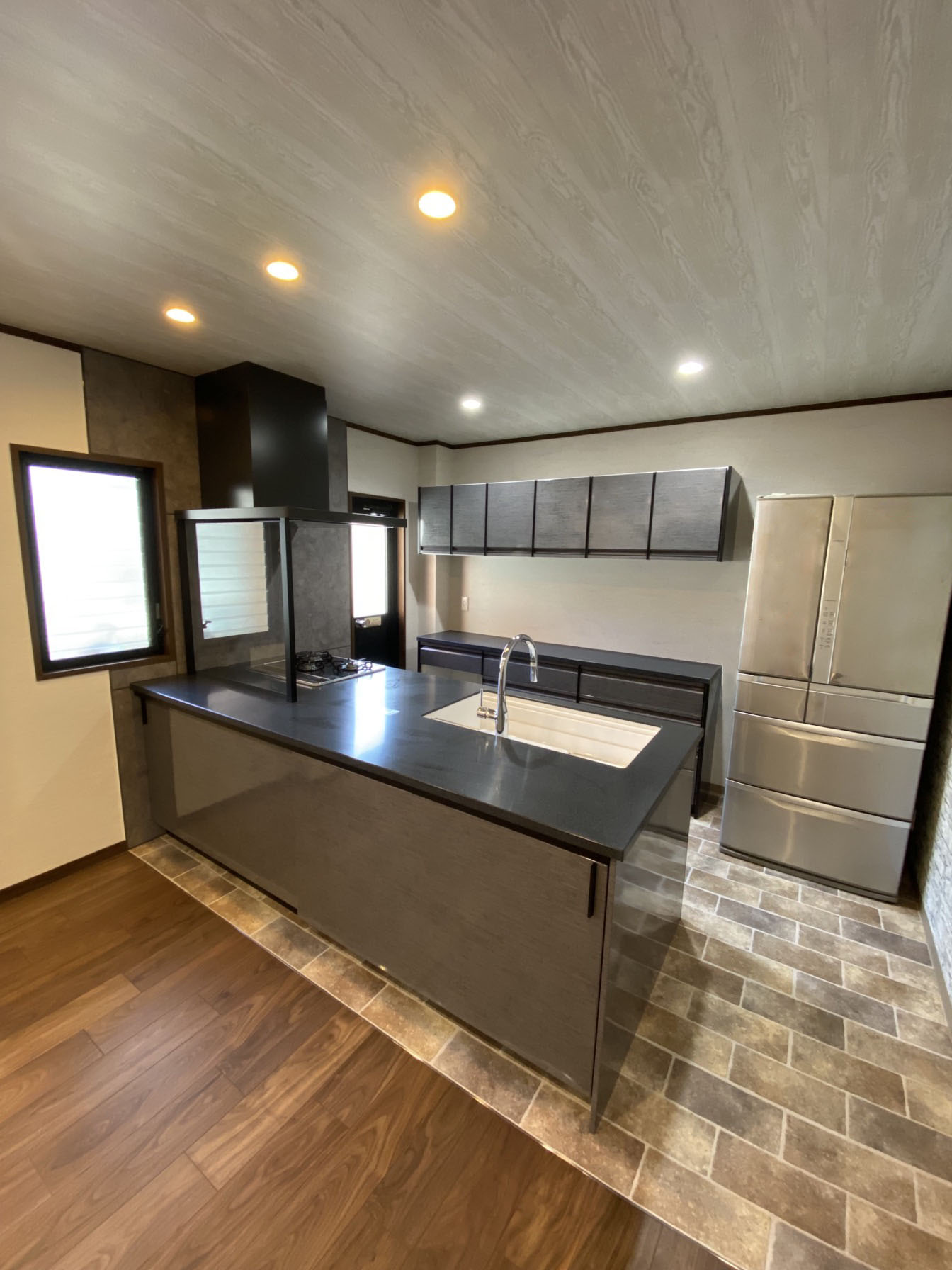 キッチンからリビングを見渡せる開放的な空間を手に入れました!